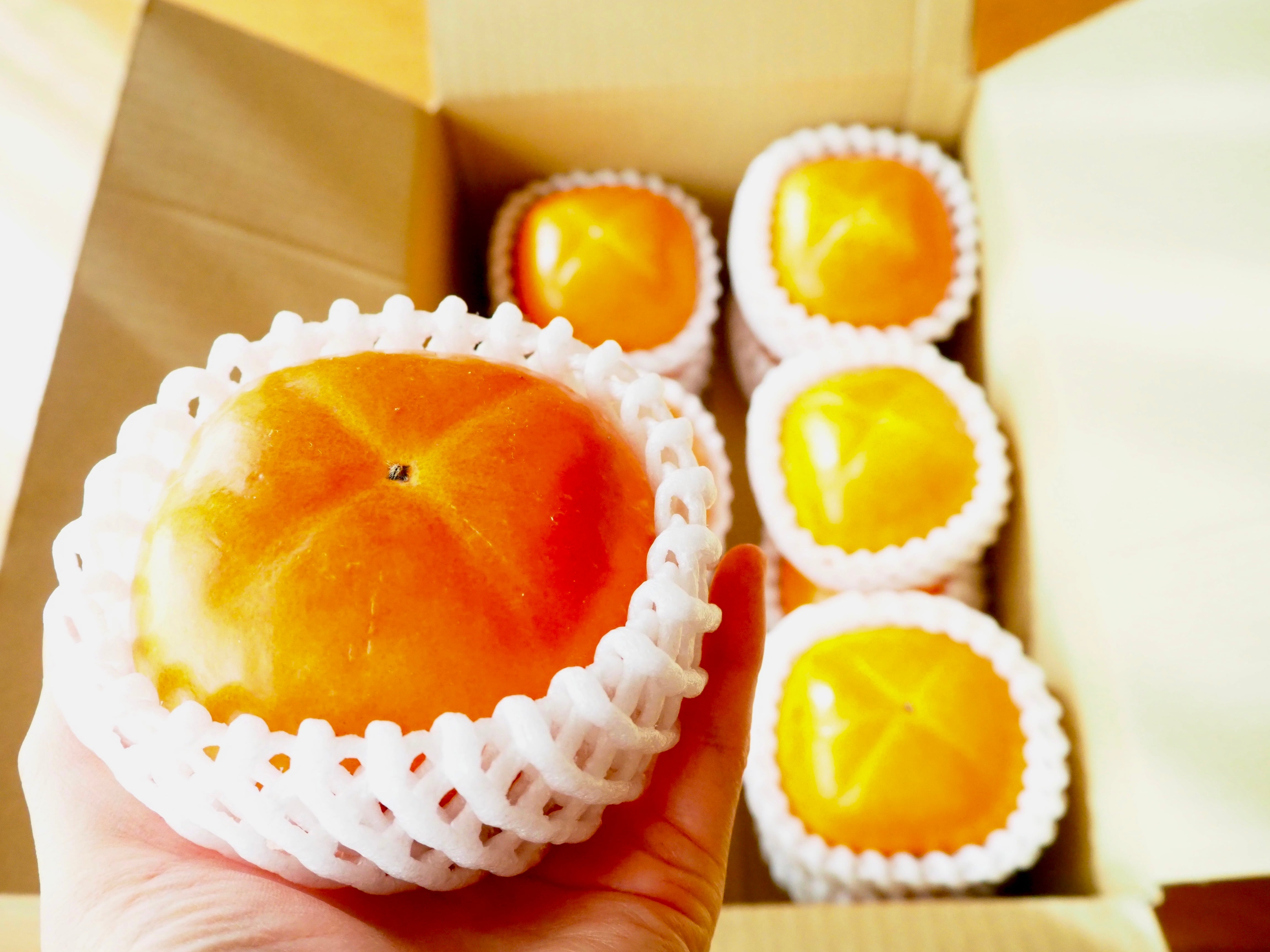 刀根早生柿は、四角ばった形が特徴。平核無柿は、平べったい形が特徴。